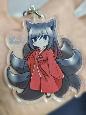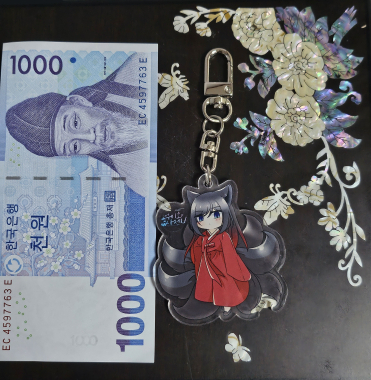 It is a transparent acrylic key ring. By selecting from a variety of acrylic rings, you can create your own key ring.