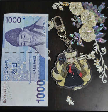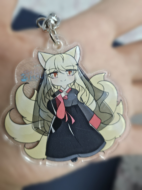 It is a transparent acrylic key ring. By selecting from a variety of acrylic rings, you can create your own key ring.