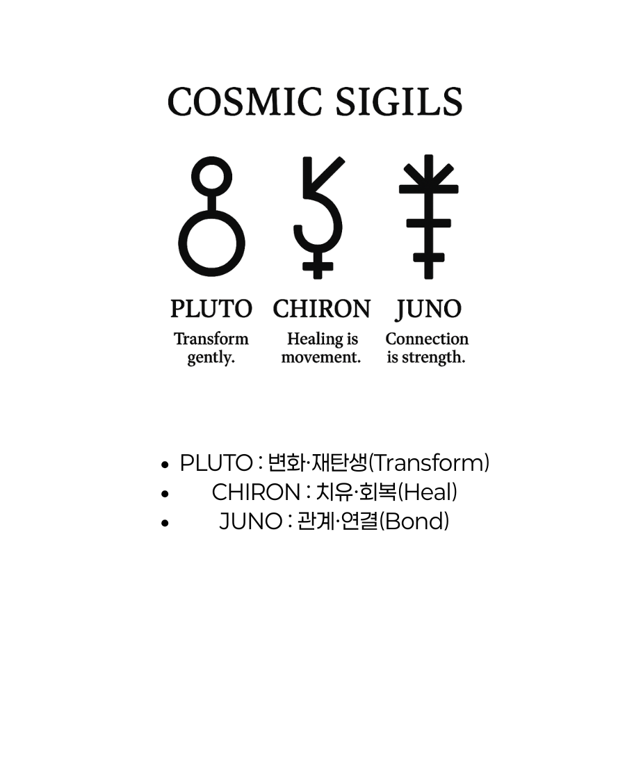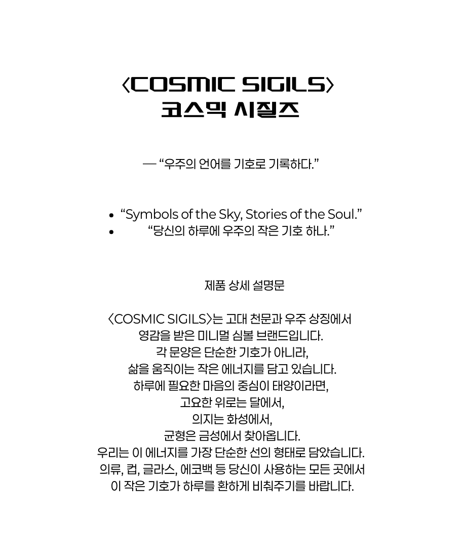 우주를 상징하는 ‘의식(시질)’이라는 뜻. 행성의 에너지와 상징을 문양으로 압축한 시그니처 브랜드