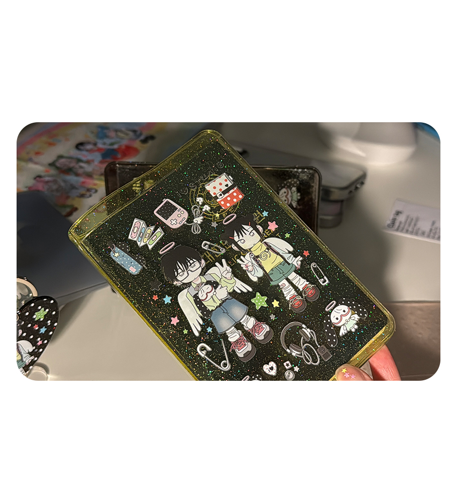 It is a passport case with a pocket covered in sparkling pearls.
