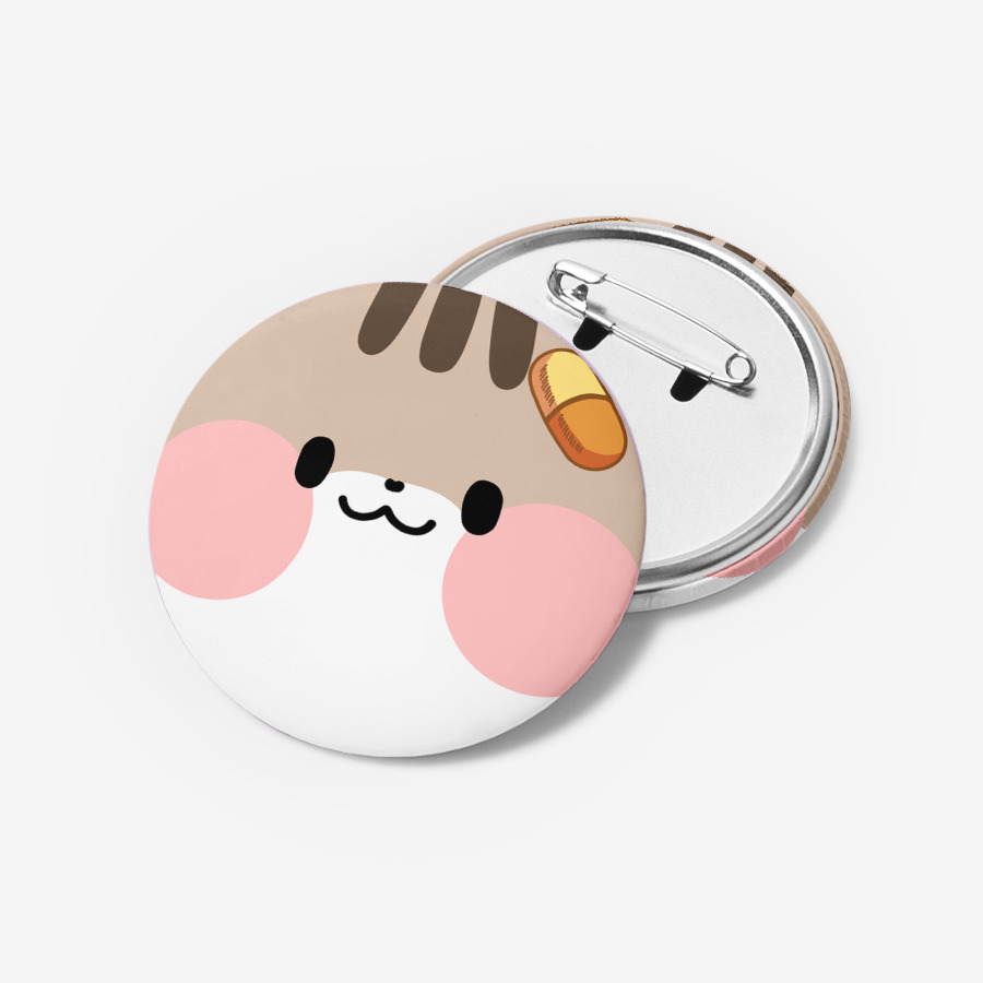 It is a 58mm diameter pin button with clothes pins on the back, allowing you to attach it to a bag or piece of clothing.