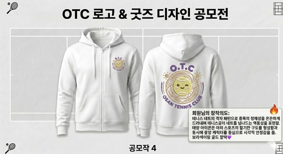 테니스공이 네트를 넘나드는 역동성, 태양 아이콘으로 표현한 야외 스포츠의 활기찬 구도, 그리고 서하언니 시그니처 보라 & 골드 컬러까지