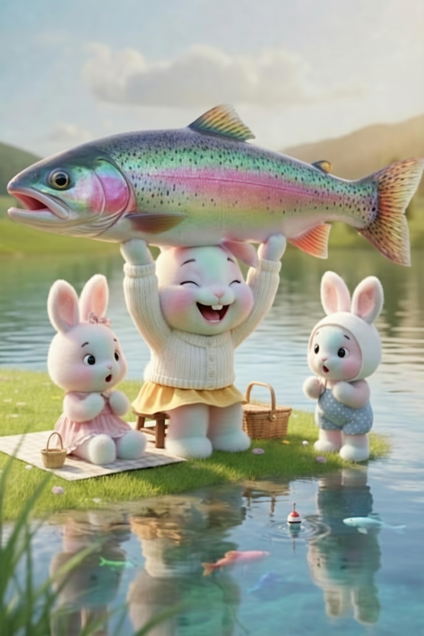 決して諦めない粘り強さで、ついに大物を釣り上げた感動の勝利シーンをデザインしました。