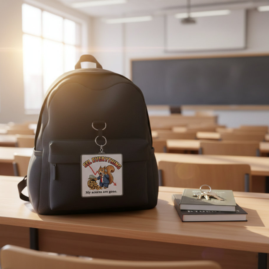 내 소중한 도토리(자산)가 다 어디 갔지? 주식과 코인 시장의 하락장을 풍자한 fake joo의 위트 넘치는 '파산한 다람쥐' 키링입니다.