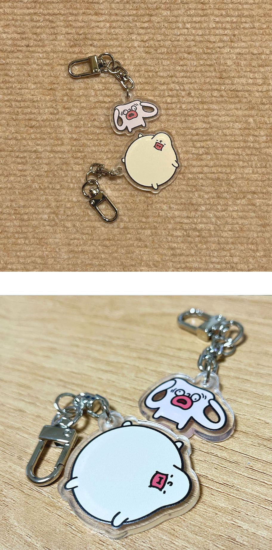透明なアクリル素材のキーホルダーです。