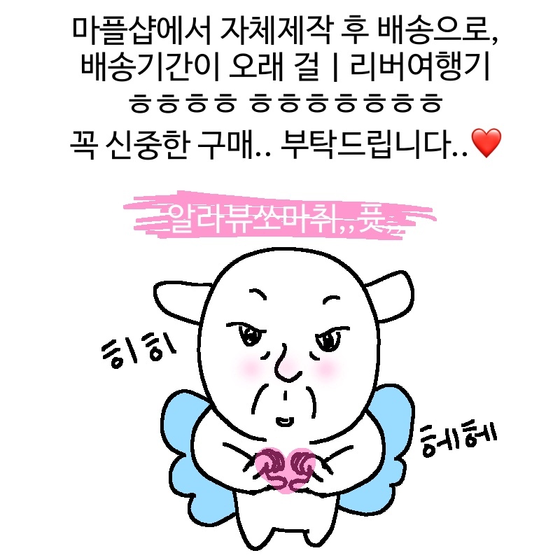모든 마플샵제작배송 상품은 주문 제작 방식으로 제작되어 단순 변심으로 인한 교환/환불이 불가합니다.