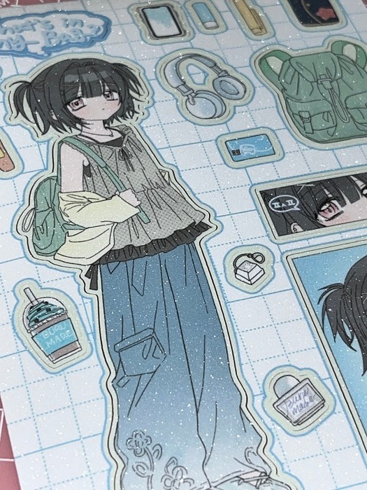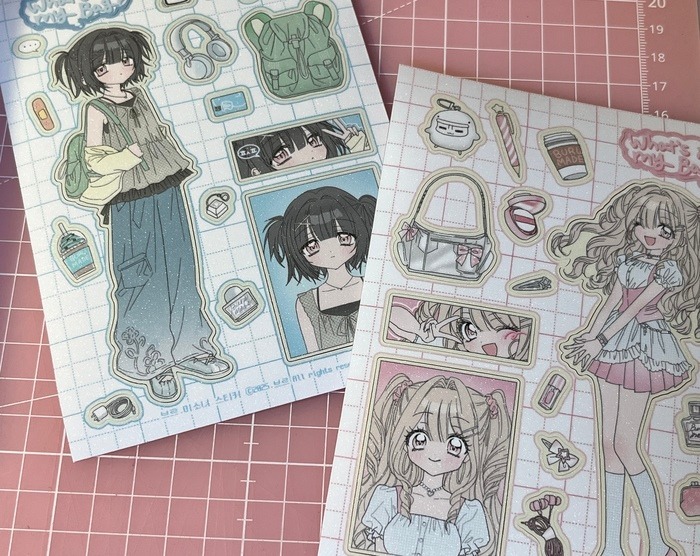 쿠키와 허니의 소지품을 그린 스티커입니다