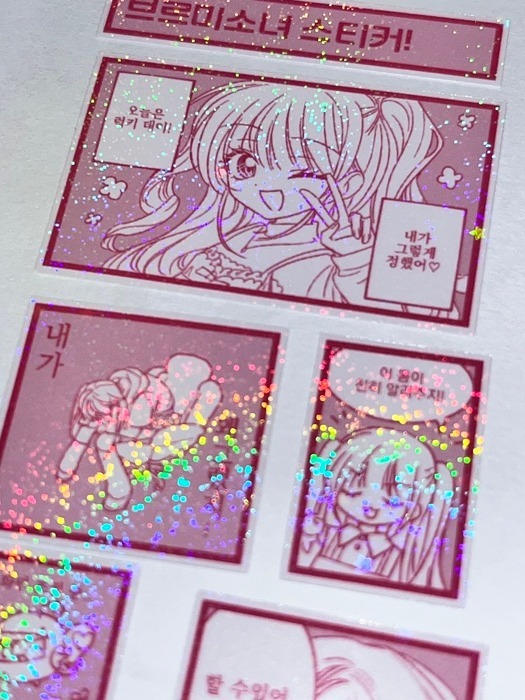 핑크 미소녀 스티커 - 투명후지 은색원지
