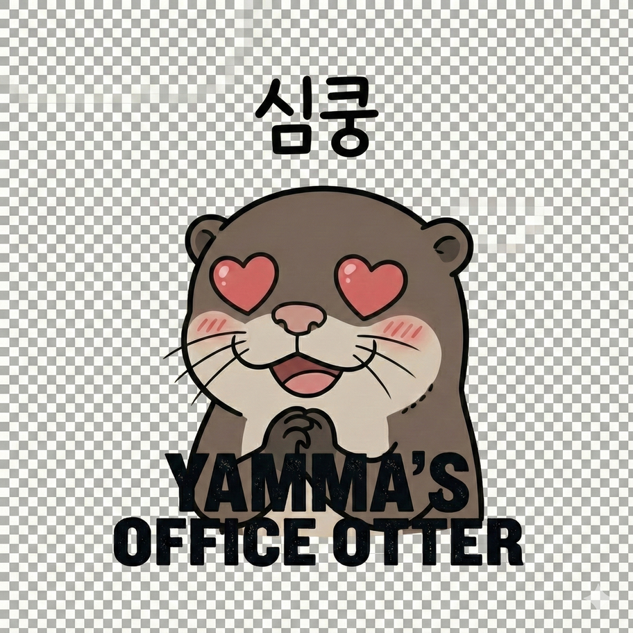 반전 매력 디자인: 앞면엔 작고 귀여운 심쿵 로고로 심플하게, 뒷면엔(또는 선택에 따라) 큼직한 하트 수달로 확실한 포인트를 주었습니다.