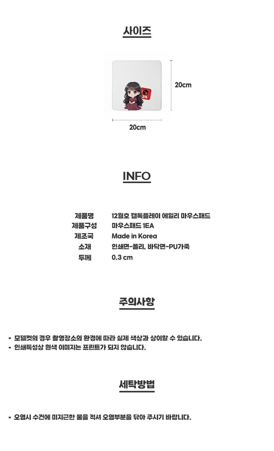 • 소재 : 인쇄면-폴리, 바닥면-PU가죽