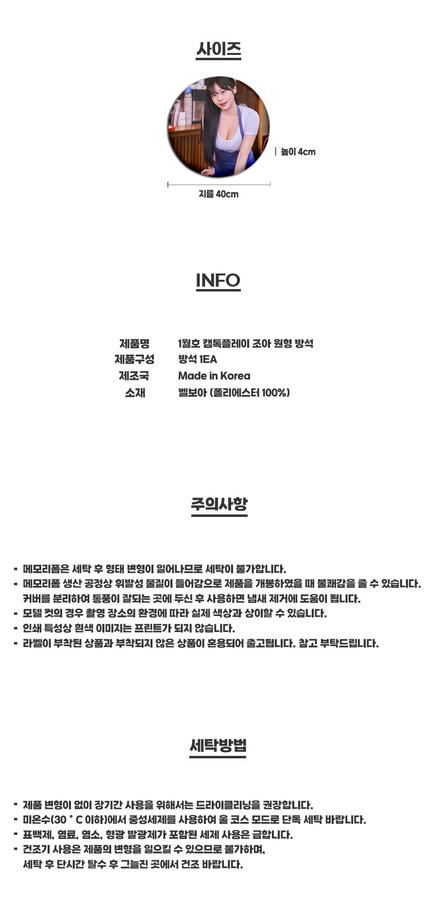 Size (cm)메모리폼 원형 방석 (벨보아)