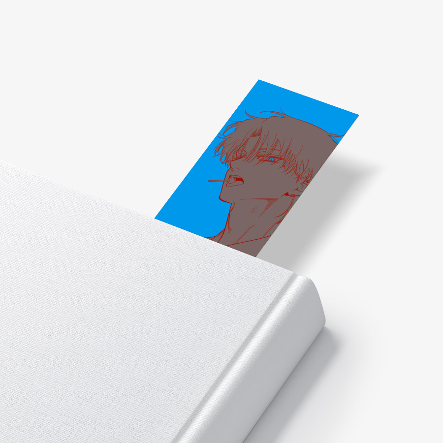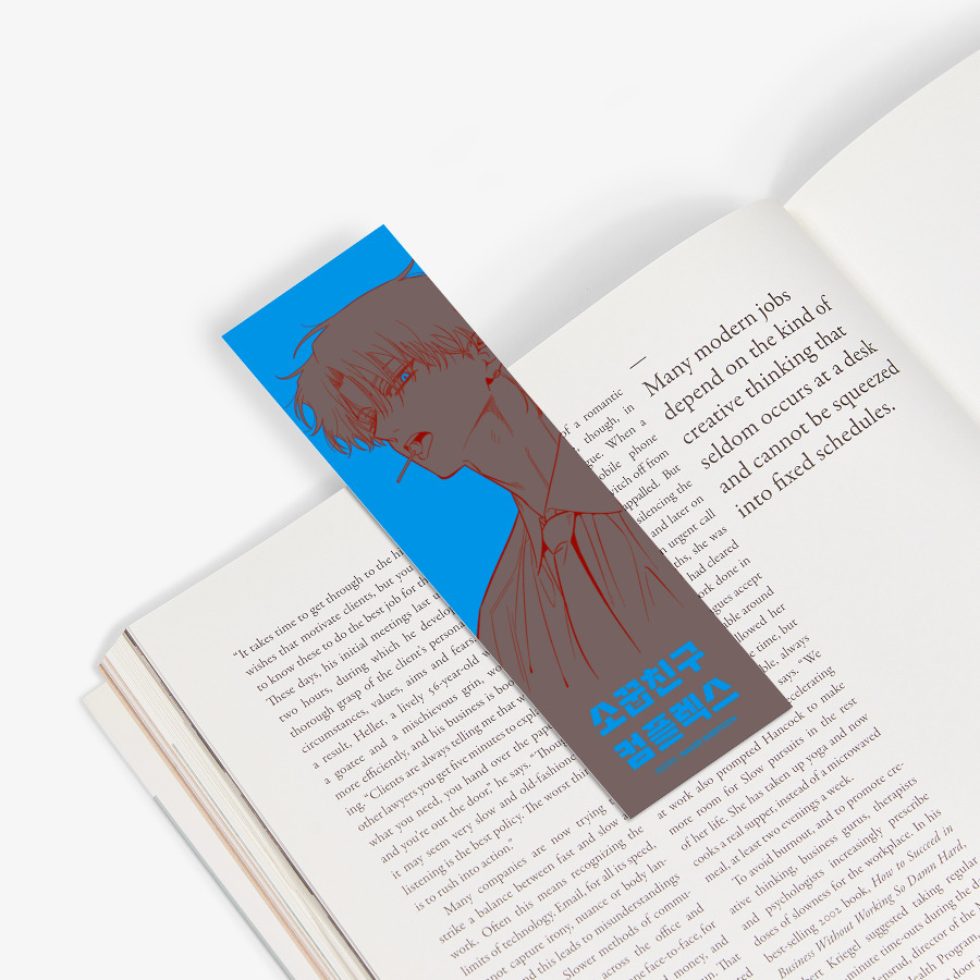 직사각 형태의 두꺼운 양면 책갈피입니다.