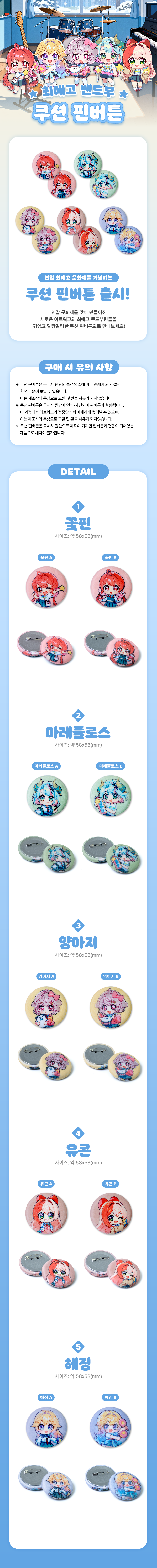 최애고 밴드부 쿠션 핀버튼