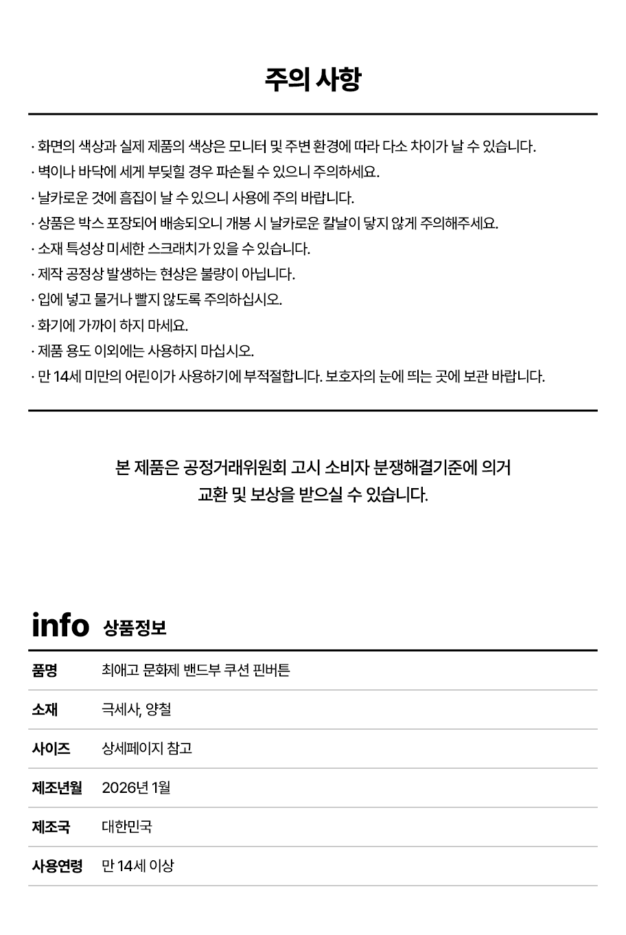 - 상품 수령 7일 이내, 개봉·훼손 전만 환불·교환이 가능합니다.