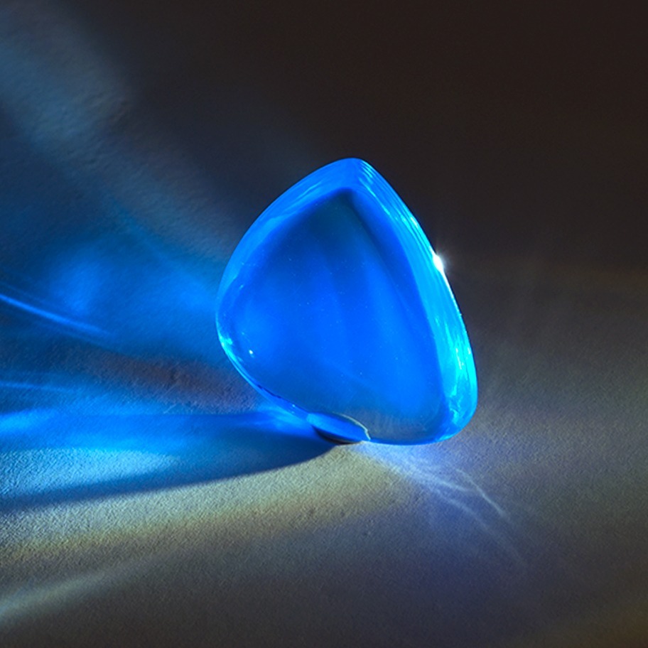 측면에 조명을 비추면 밝은 하늘색의 스위스블루 토파즈가 진하게 빛납니다