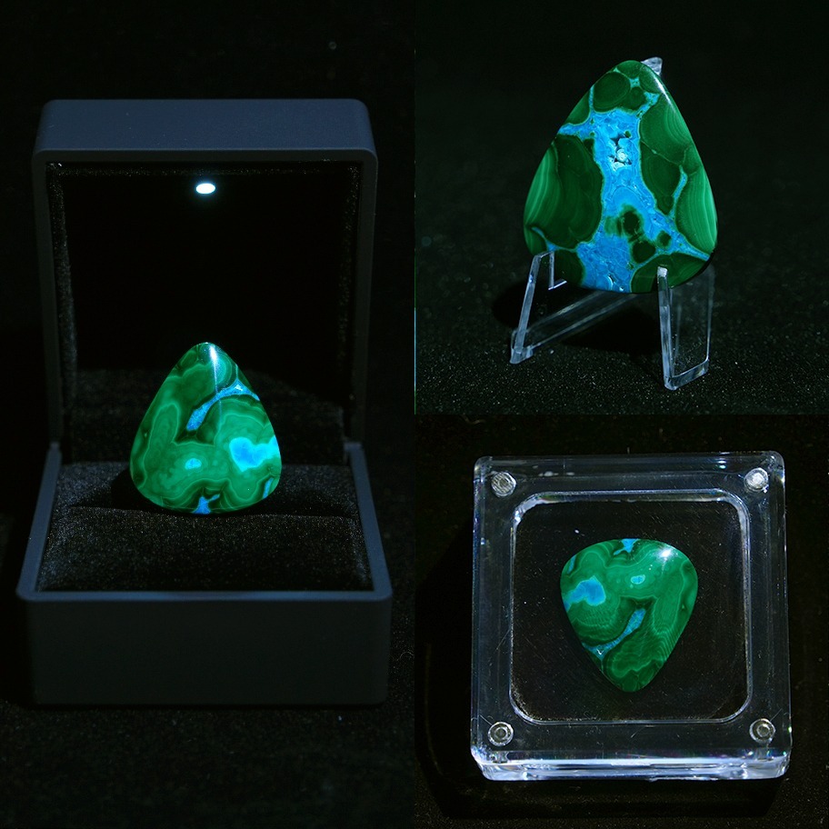 크리소콜라 말라카이트를 더 빛내는 LED 케이스, 미니 스탠드, 투명 아크릴 케이스와 함께 담아드립니다