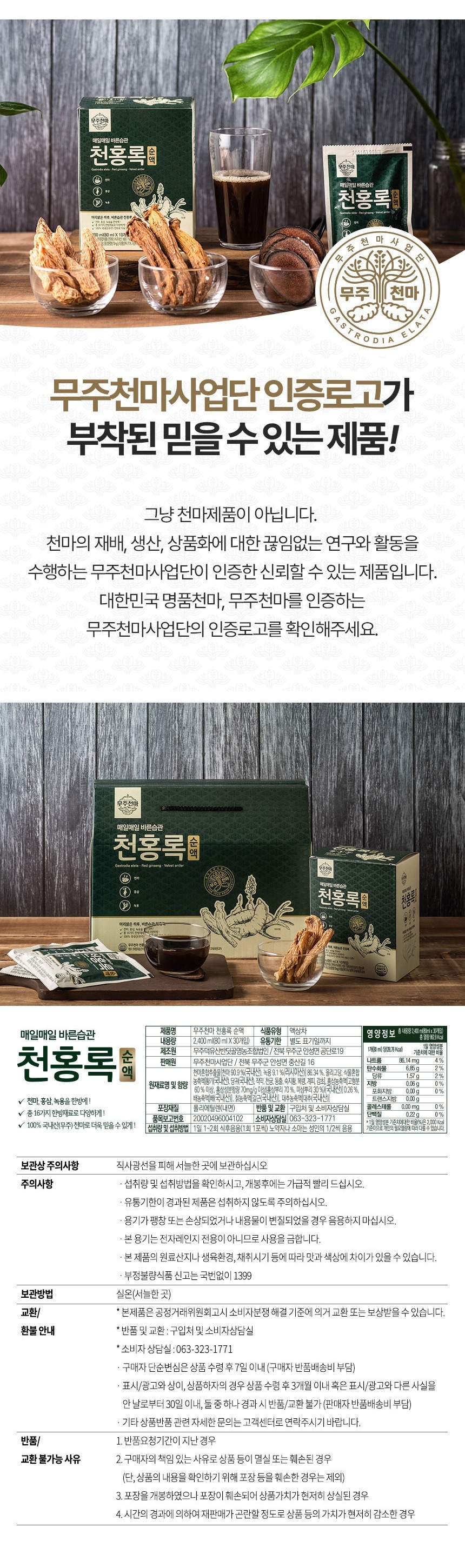 [무주천마 X 선도부장 특가] 천홍록 순액 80ml x 30개입 천마 홍삼 녹용을 한방에! [원산지:국산(전라북도 무주군)]