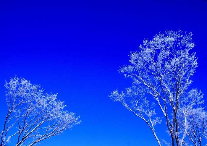 한겨울 맑은날 나무에 서리꽃이 피었습니다.