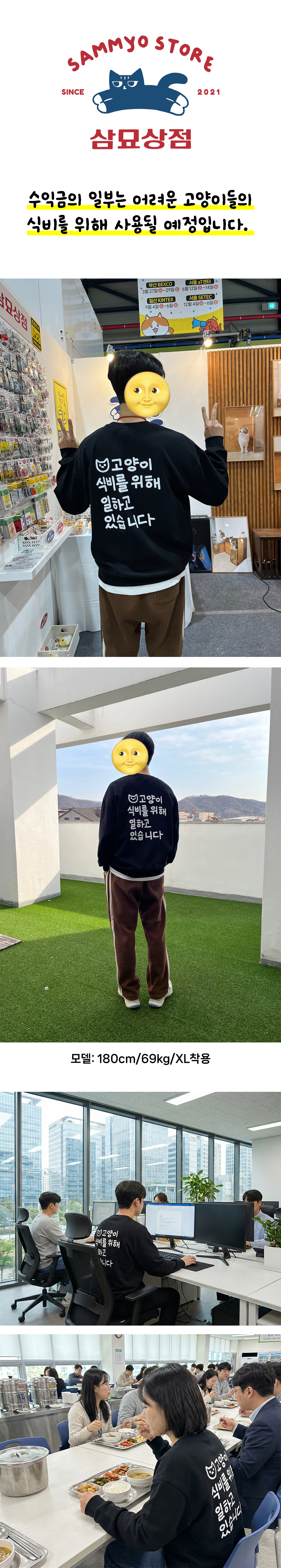 면 60%와 폴리 40% 혼방 원단 280gsm 중량감의 특양면 맨투맨입니다.