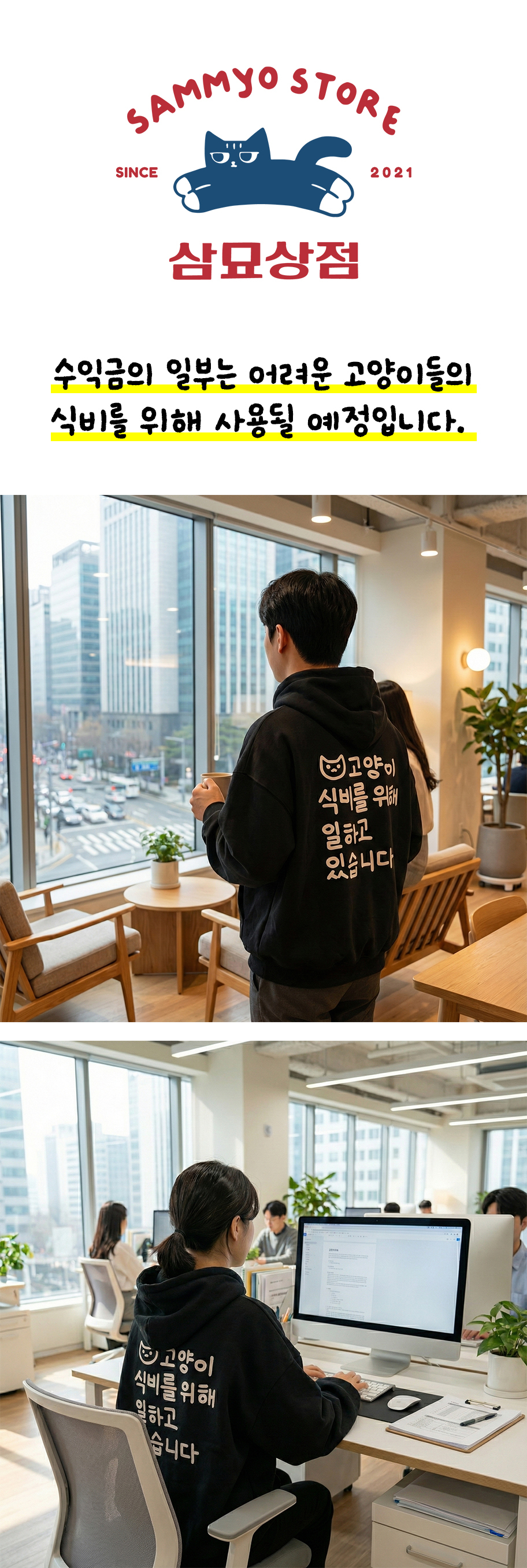 직원들 식비를 위해 일하고 있습니다 오버핏 후드티