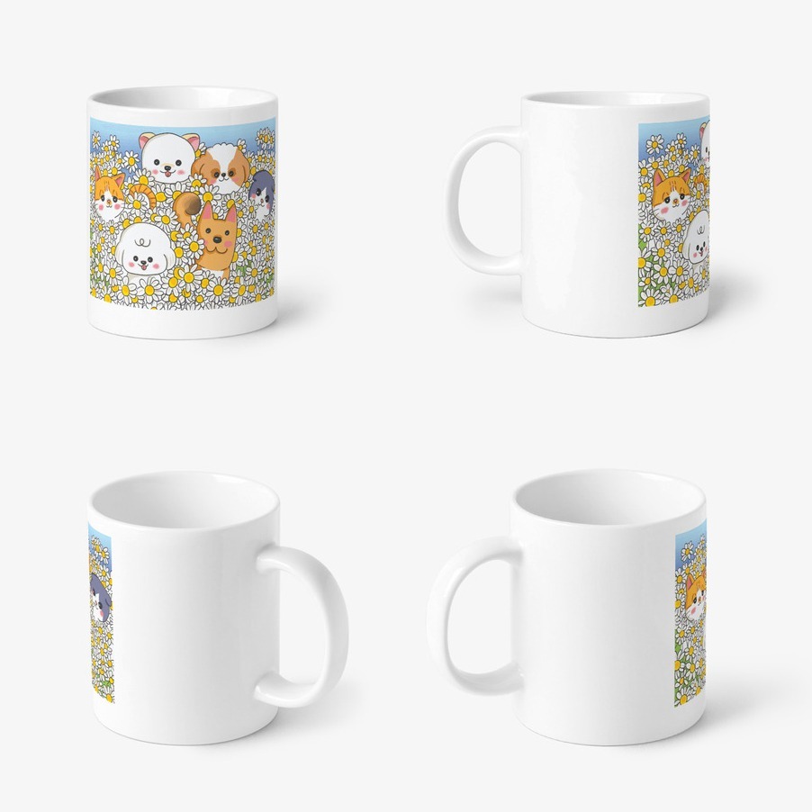 귀여운 강아지 고양이 친구들이 그려진 머그컵 입니다.^^