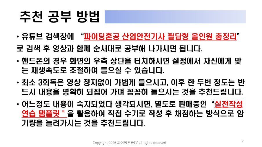 자격증 전문 유튜브채널 파이팅혼공TV의 산업안전기사 시리즈 중
