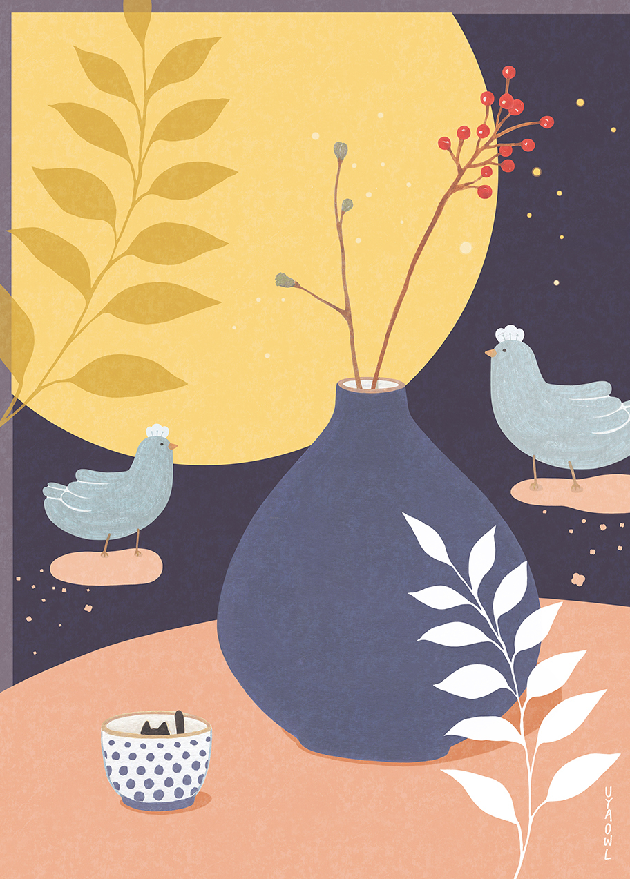차분한 밤의 풍경 속에 담아낸 일러스트입니다.