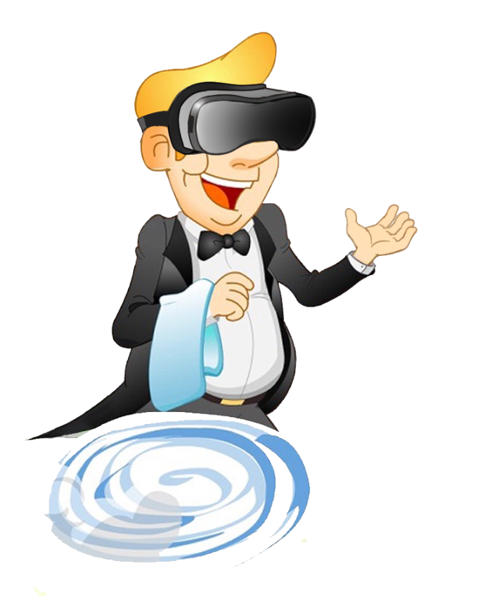 VR 기기를 착용한 웨이타 Peter, 스마트하죠?